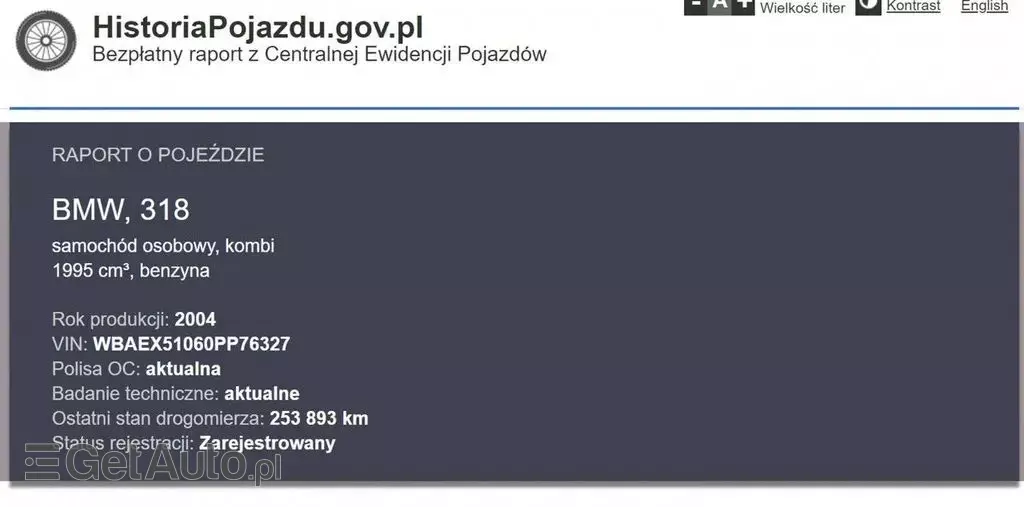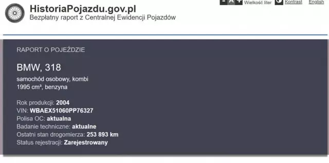 PONIŻEJ PODAJE DANE NIEZBĘDNE DO DARMOWEJ WERYFIKACJI HISTORII PREZENTOWANEGO AUTA NA STRONIE MINISTERSTWA TRANSPORTU