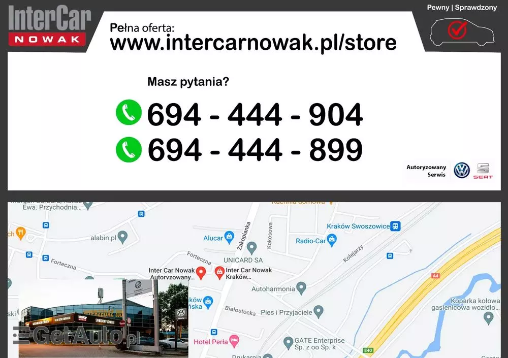 Oczywiście pamiętaj, aby wspomnieć, że ogłoszenie znalazłeś na GetAuto.pl