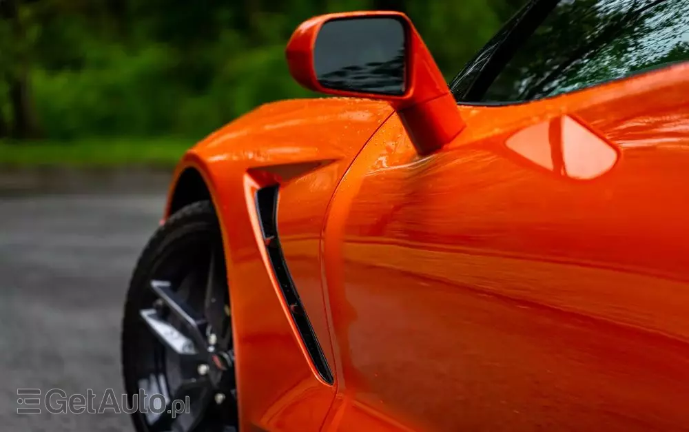 Z zewnątrz, Chevrolet Corvette prezentuje się niezwykle stylowo i odważnie, z przodu charakteryzuje się pięknym nisko osadzonym grillem, z tyłu zwracającymi uwagę przepięknymi, wyeksponowanymi reflektorami. Kształty karoserii są łukowate, zmysłowe i zdecydowane, co dodaje autu charakteru. Jego pomarańczowy kolor wzbudza jeszcze większe emocje.