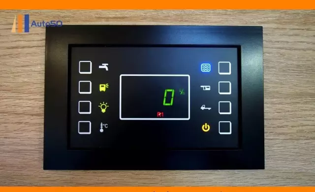-Centralny panel sterowania oświetleniem, pompą wody pokazujący stan naładowania akumulatorów oraz ilość wody w zbiornikach