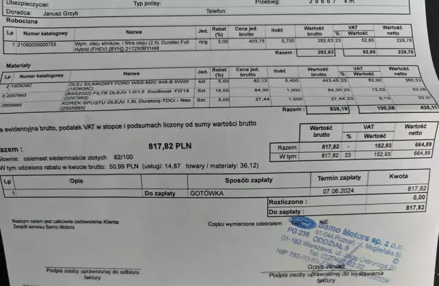 W przypadku rozliczenia wartość Forda 145 000 zł.