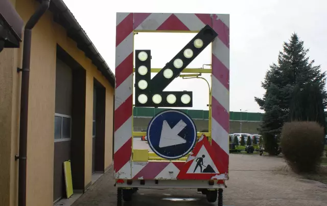 Podświetlany(migający)znak Strzałka oraz oraz drugi odblaskowy.